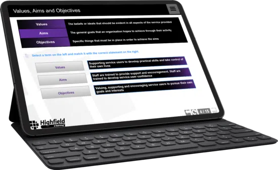 Interactive and engaging, Highfield’s Care Certificate e-learning is designed to help you achieve the knowledge requirements of all 15 standards.