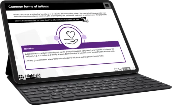 Covering the key aspects of the Bribery Act, this interactive online training equips your business with the tools to detect, prevent, and report bribery and corruption. -